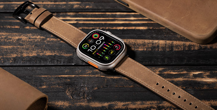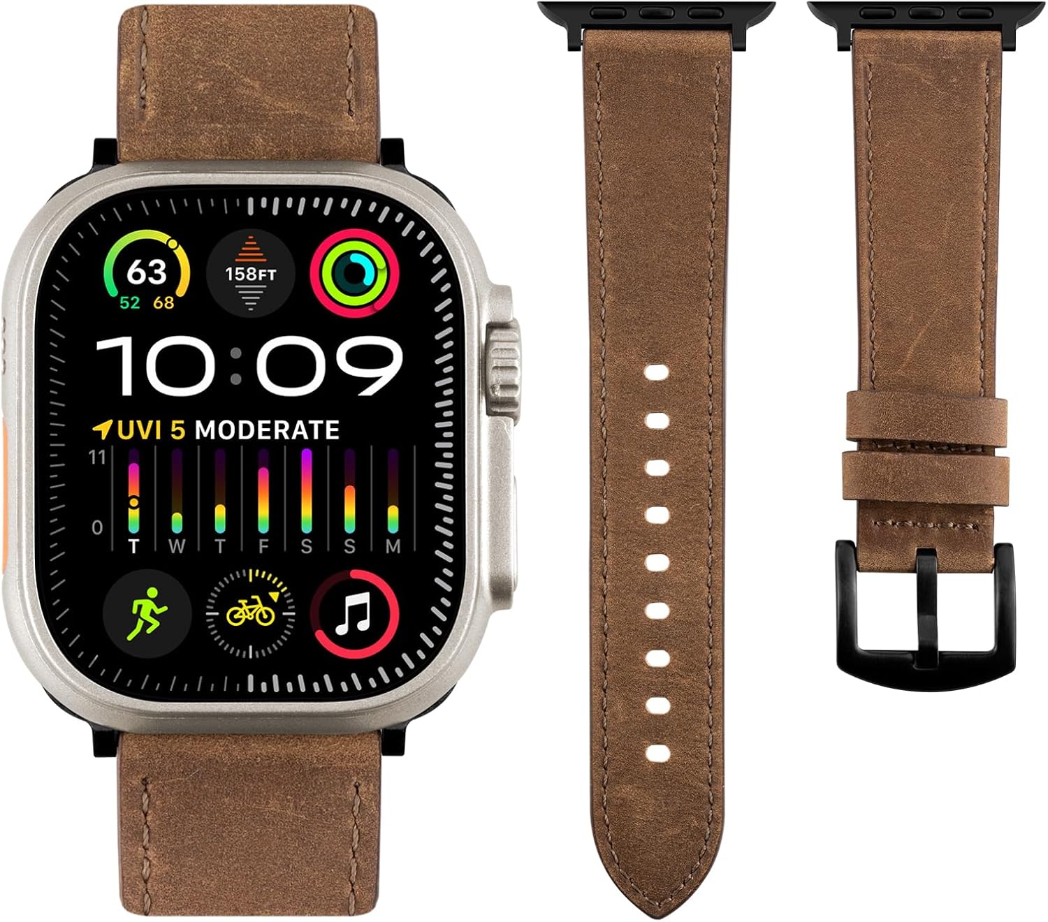 Belemay’s handcrafted crazy horse leather bands offer a unique patina and soft comfort, perfectly fitting Apple Watch Ultra 49mm models. Durable stainless steel hardware and breathable pigskin lining ensure lasting style and wearability.