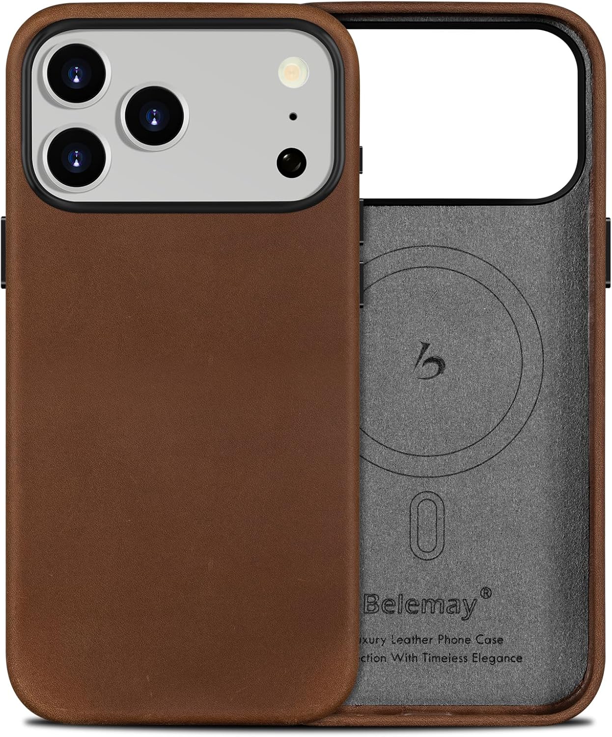Belemay’s Crazy Horse leather case offers a unique two-tone finish that develops a rich patina over time. Designed for iPhone 17 Pro Max, it combines vintage style with MagSafe compatibility and precise camera control.